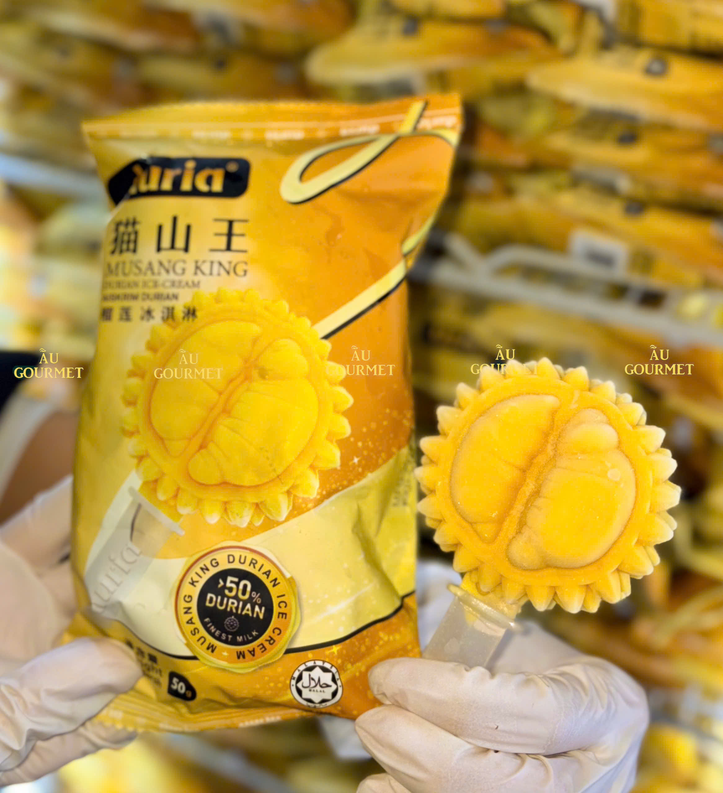 Kem Sầu Riêng Musang King là sản phẩm nhập khẩu độc quyền từ Malaysia, được Au Gourmet mang về Việt Nam qua đường hàng không, giữ trọn hương vị nguyên bản và độ tươi mịn như vừa làm ra.